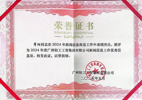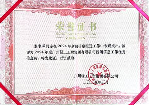 紡織公司榮獲“廣州輕工工貿(mào)集團(tuán)有限公司2024年度新聞信息工作先進(jìn)單位”稱號(hào)