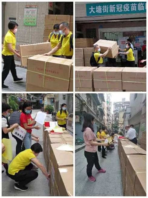 當(dāng)前,廣州疫情趨緊,4月12日,紡織公司黨委書記、董事長(zhǎng)簡(jiǎn)瑋儀,黨委副書記、紀(jì)委書記、工會(huì)主席丘海瀾親自帶隊(duì),把1500盒利工民毛巾送到了越秀區(qū)大塘街道。